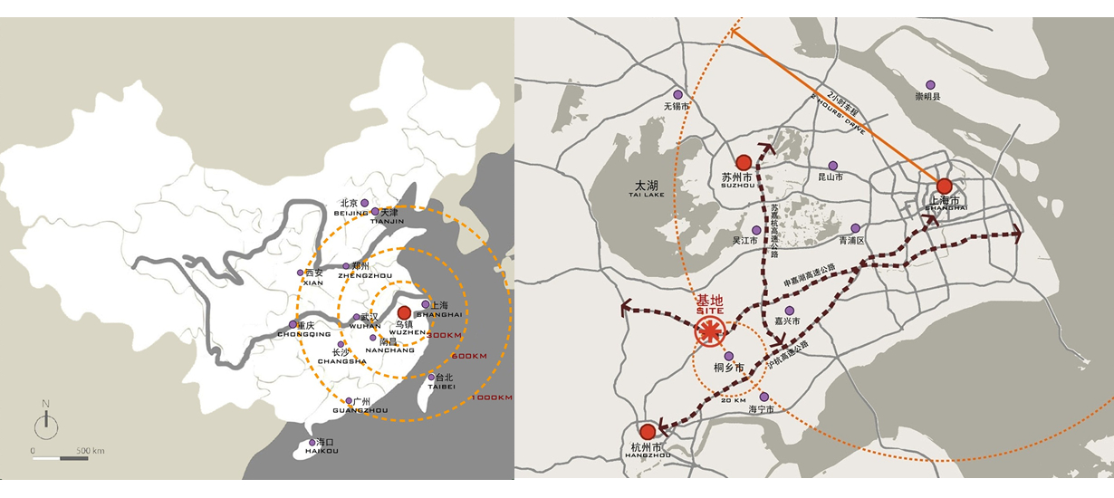 乌镇拥有1300年建镇史,是浙北古老的水乡重镇。乌镇地处河流冲积和湖沼淤积平原,地势平坦,无山丘,河流纵横交织,气候温和湿润,雨量充沛,光照充足,物产丰富,素有“鱼米之乡、丝绸之府”之称。贝斯特国际健康生态产业园位于浙江省桐乡市乌镇镇白马墩村,紧邻申嘉湖高速,距乌镇景区1.5公里,距桐乡市中心18公里,距杭州市65公里,距苏州市74公里,距上海市131公里。